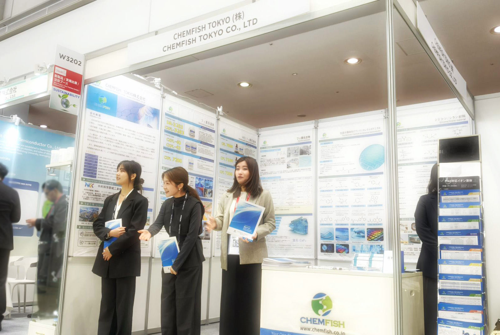 CHEMFISH 作為專注于半導(dǎo)體及先進(jìn)電子材料領(lǐng)域的專業(yè)供應(yīng)商,攜多款核心產(chǎn)品與解決方案正式參展,現(xiàn)場(chǎng)吸引了眾多日本及歐美大手企業(yè)駐足交流,反響熱烈。展會(huì)現(xiàn)場(chǎng)CHEMFISH團(tuán)隊(duì)熱忱接待前來(lái)咨詢的每一位客戶,專業(yè)性和服務(wù)態(tài)度受到客戶一致肯定。